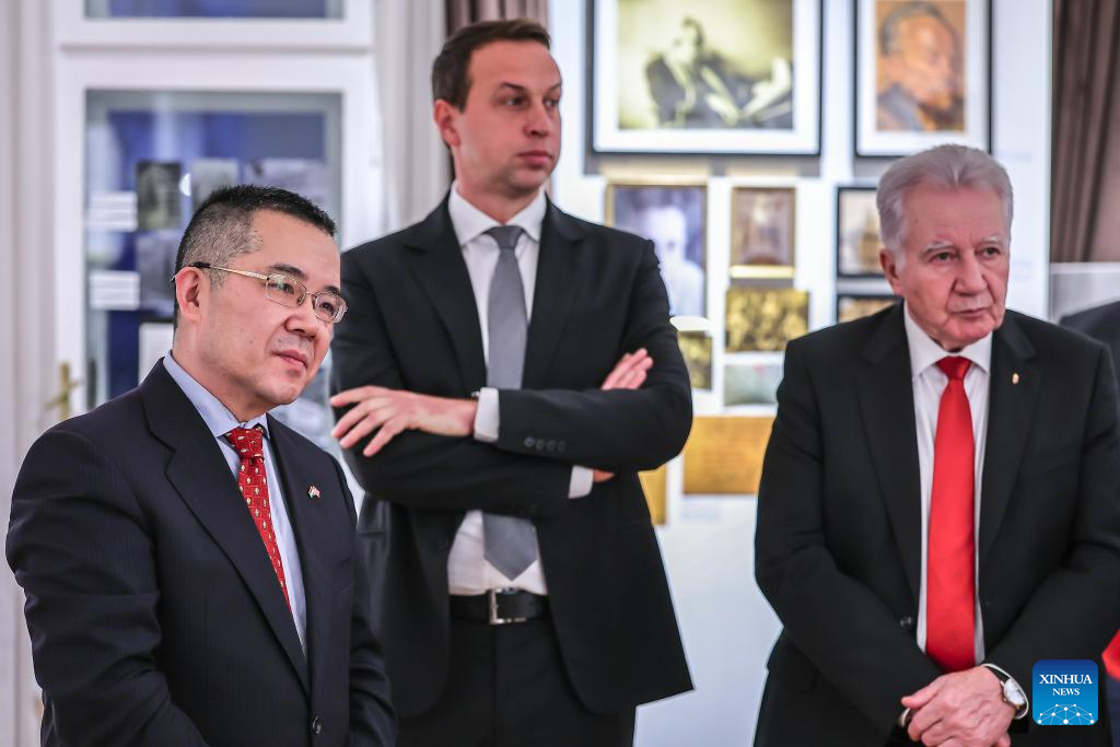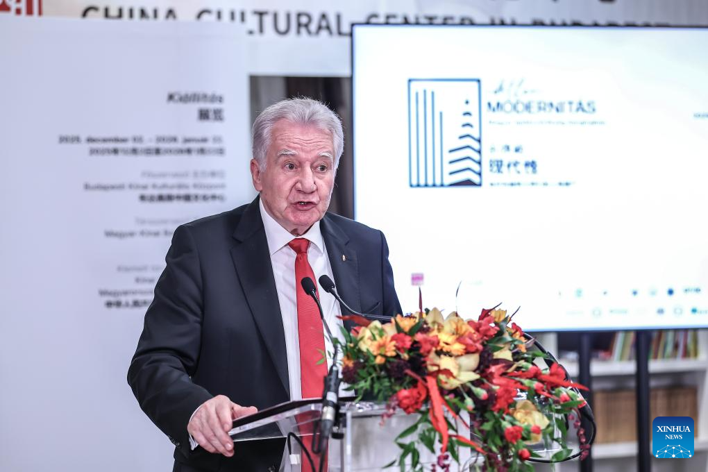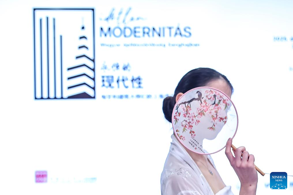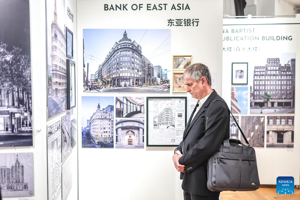 Organizada conjuntamente pelo Centro Cultural da China em Budapeste e pela Associação de Amizade Sino-húngara, a exposição apresenta as realizações arquitetônicas de quatro arquitetos húngaros: László Hudec, Károly Gonda, Béla Matrai e Rudolf Somjen. Por meio de fotografias, filmes, documentos de arquivo, maquetes e instalações, ilustra como seus projetos modernistas se integraram à evolução da paisagem urbana de Shanghai. (Foto por David Balogh/Xinhua)